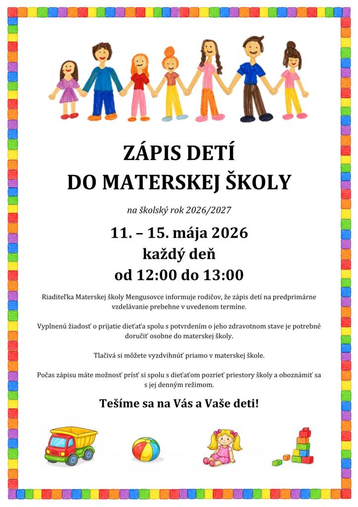 ZÁPIS DETÍ DO MATERSKEJ ŠKOLY